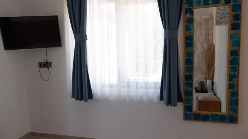 Tesisimizde 3 adet iki kişilik standart oda mevcuttur. Bütün 2 kişilik standart odalar denize sıfırdır. 1 oda ön cepheye diğer 2 oda arka cepheye bakmaktadır. Cephe seçimi için bizimle irtibata geçmenizi rica ederiz. Wifi erişimi ücretsizdir. Misafirlerimiz özel plajımızdaki şezlonglardan ücretsiz faydalanır. İsteğe bağlı olarak bebek yatağı ve mama sandalyesi verilebilir. Otoparkımız mevcuttur.