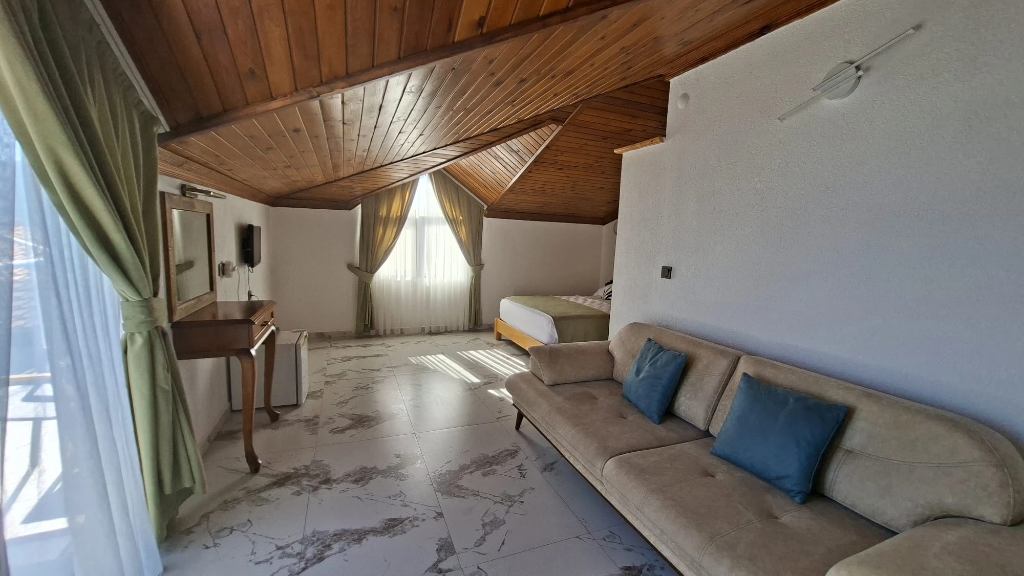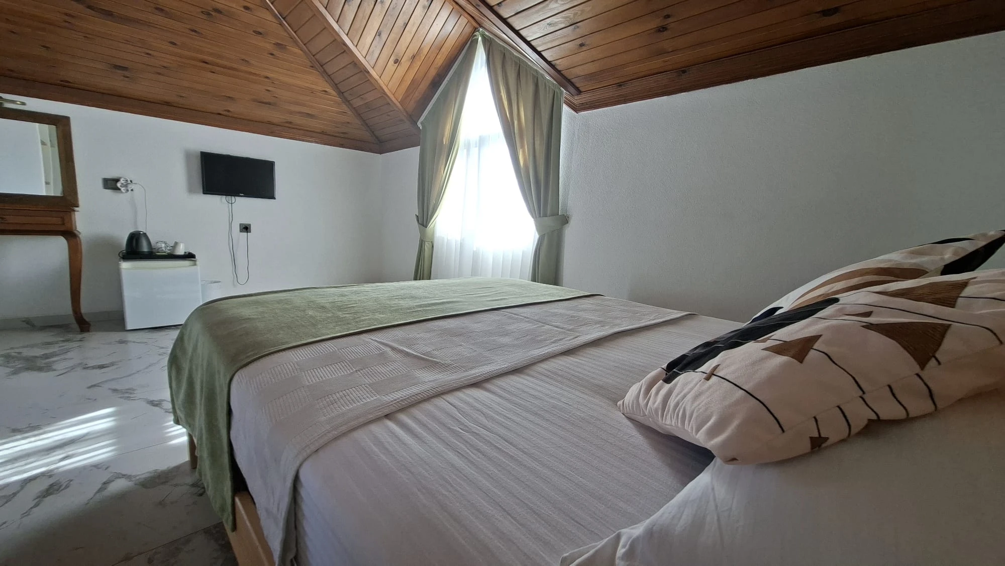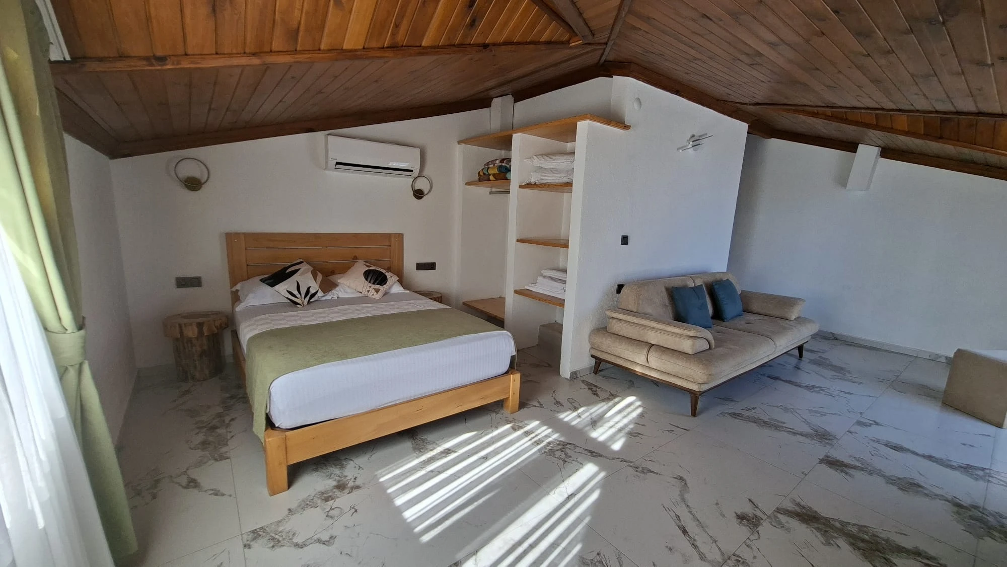 Tesisimizde 4 adet çatı stüdyosu mevcuttur. Stüdyolarımızın biri 13 m², diğer stüdyolarımız 30 m²dir. Bütün stüdyolarımız denize sıfırdır. 1 oda ön cepheye, 3 oda yan cepheye bakmaktadır. Cephe seçimi için bizimle irtibata geçmenizi rica ederiz. Wifi erişimi ücretsizdir. Otoparkımız vardır. Ziyaretçilerimiz özel plajımızdaki şezlonglardan ücretsiz faydalanır. İsteğe bağlı olarak bebek yatağı ve mama sandalyesi verilebilir.