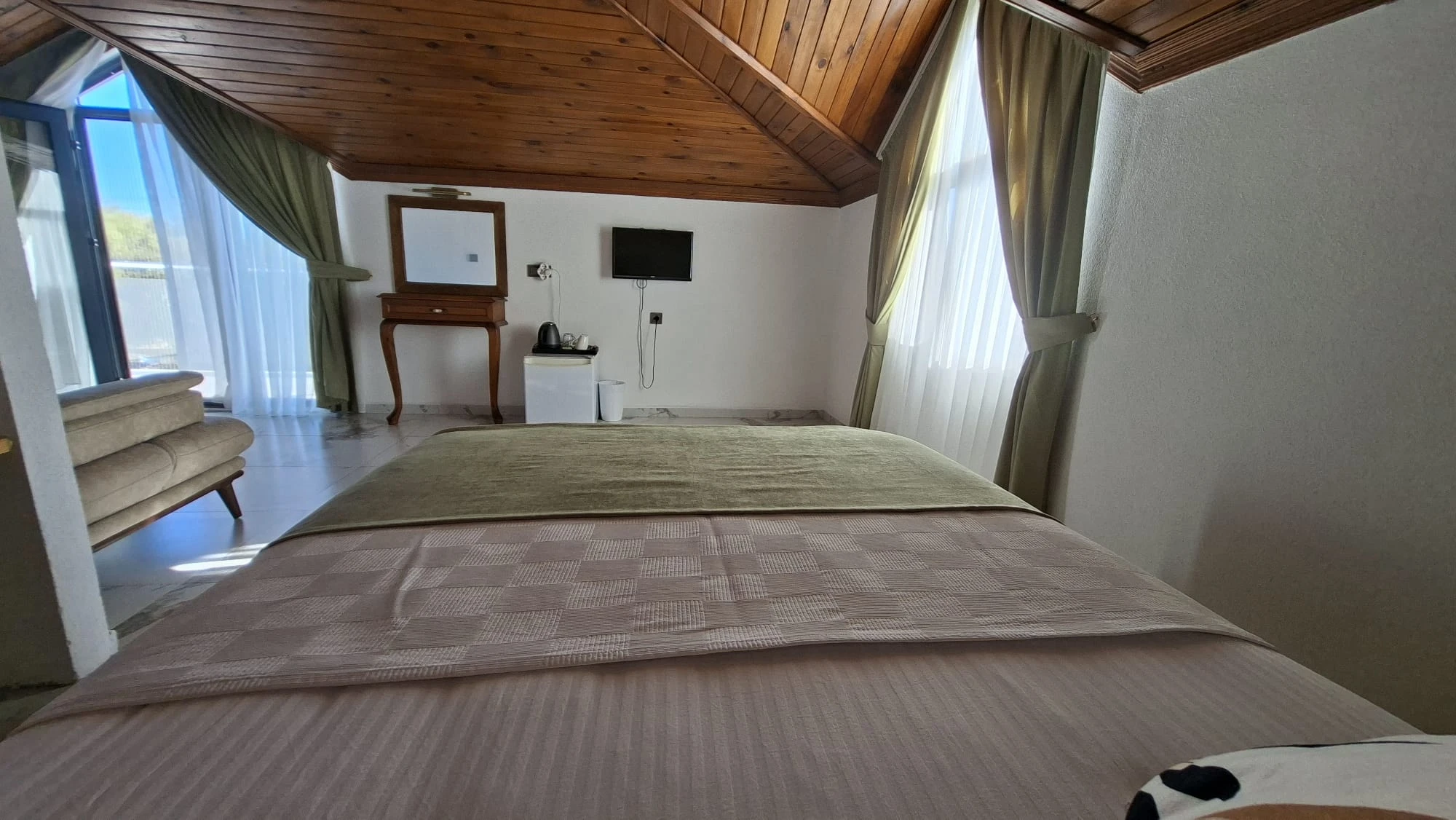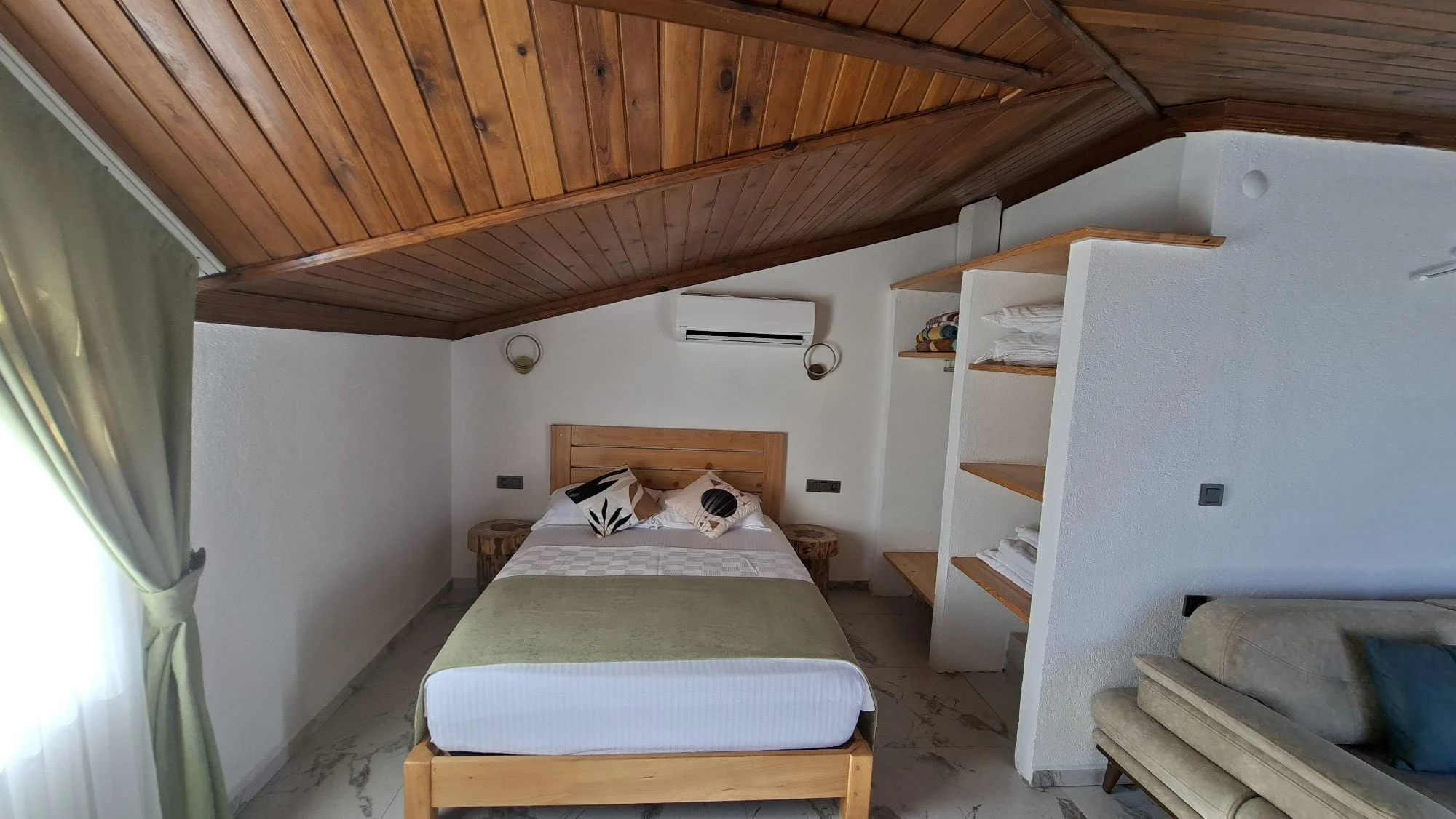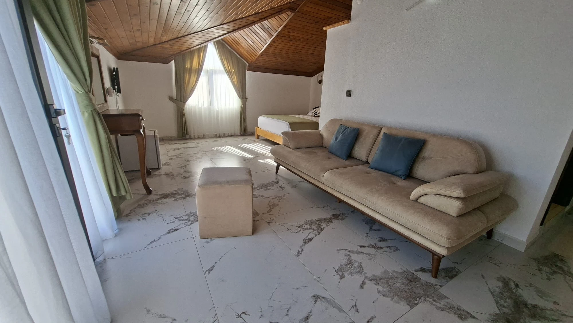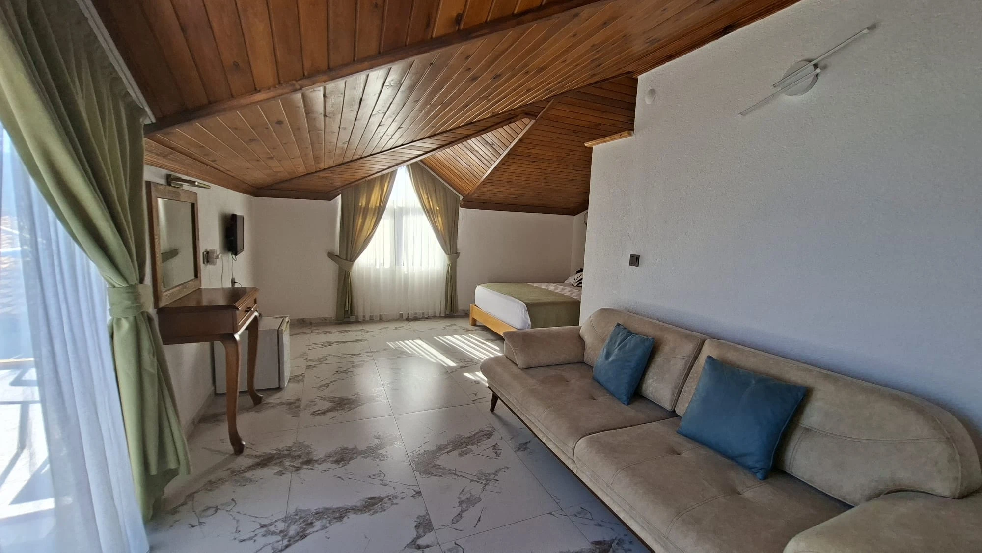 Tesisimizde 4 adet çatı stüdyosu mevcuttur. Stüdyolarımızın biri 13 m², diğer stüdyolarımız 30 m²dir. Bütün stüdyolarımız denize sıfırdır. 1 oda ön cepheye, 3 oda yan cepheye bakmaktadır. Cephe seçimi için bizimle irtibata geçmenizi rica ederiz. Wifi erişimi ücretsizdir. Otoparkımız vardır. Ziyaretçilerimiz özel plajımızdaki şezlonglardan ücretsiz faydalanır. İsteğe bağlı olarak bebek yatağı ve mama sandalyesi verilebilir.